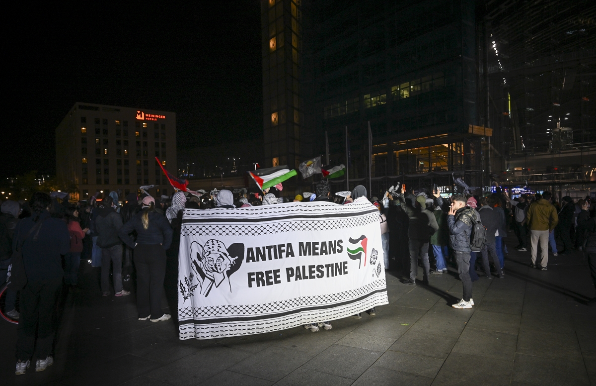 Göstericiler ayrıca Almanya'nın da Gazze'deki soykırıma destek verdiğini ifade ederek, "Almanya finanse ediyor İsrail bombalıyor" sloganları attı.