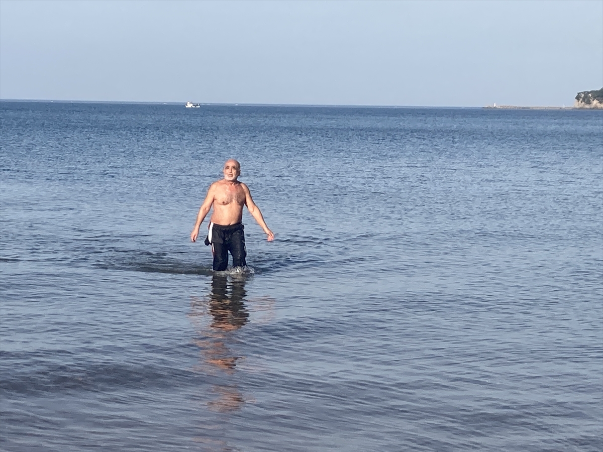 Hava sıcaklığının 10 derece ölçüldüğü Bartın'da, 75 yaşındaki kişi aralık ayında denize girmenin keyfini yaşadı.