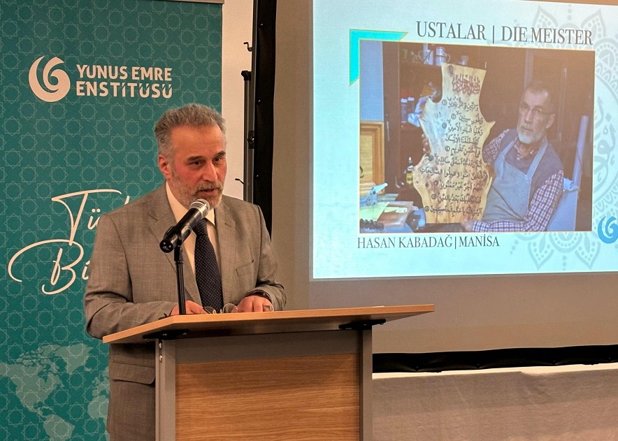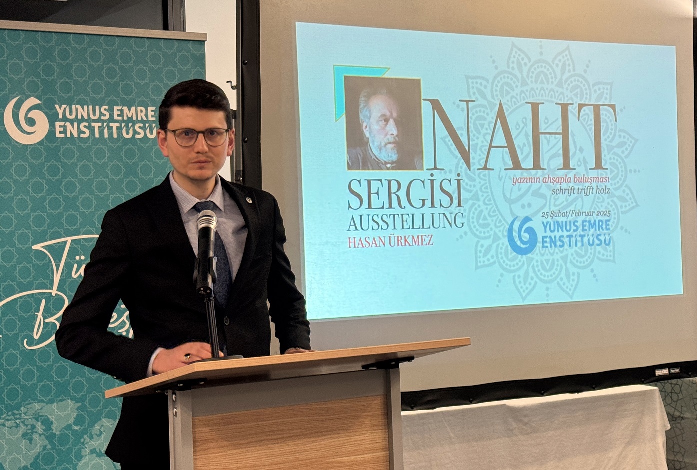 Berlin’de yaşayan naht sanatçısı Hasan Ürkmez, açılışta yaptığı konuşmada, asırlardır bir medeniyet mirası olarak yaşatılan ahşap oyma sanatının ruhunu ve estetiğini birlikte keşfetmek için bir araya geldiklerini belirterek, “Naht sanatı sadece ahşap oyma, ahşabı kesme işi değil. Aynı zamanda sabır, incelik, estetik ve maneviyatın iç içe geçtiği bir sanat yolculuğu” dedi. Ahşaba işlenen her çizginin bir medeniyetin ruhunu taşıyan sessiz bir anlatı olduğunu belirten Ürkmez, “Naht sanatı Selçuklu ve Osmanlı dönemlerinde mimari eserlerde, cami mihraplarında, rahlelerde ve Kur’an-ı Kerim muhafazalarında kendine özel bir yer edinmiştir. Aynı zamanda Avrupa’daki kiliselerde de dini ve sanatsal süslemelerde kullanılan bir sanattır” diye konuştu.