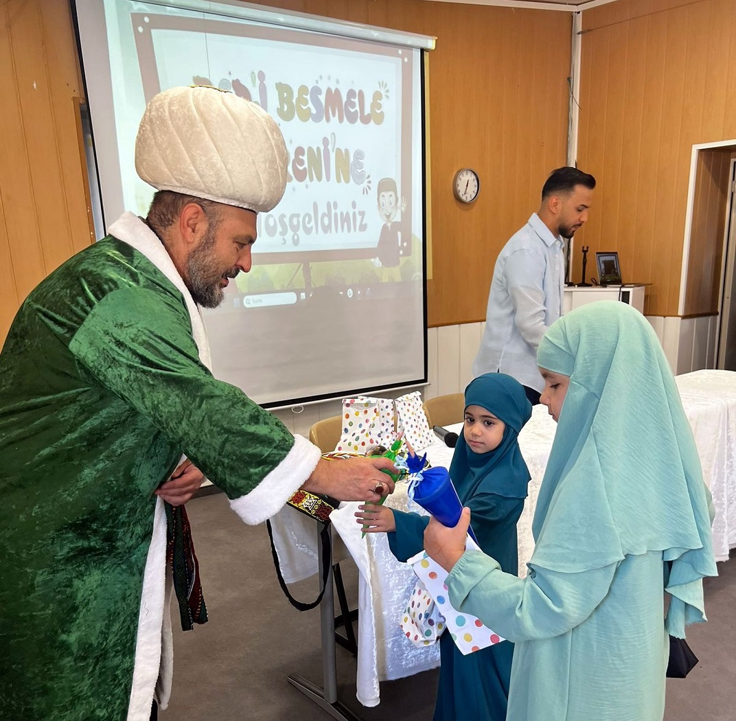 Berlin’in Wedding semtinde hizmet veren Hacı Bayram Camii, yeni eğitim yılına dualarla başladı. Her yıl geleneksel olarak düzenlenen “Bed’i Besmele” programında, bu yıl da okula yeni başlayan onlarca çocuk dualarla eğitim hayatına adım attı. Programa Berlin Bölge Başkanı Hamdi Erer, Hacı Bayram Camii Başkanı Orhan Doğan, Eğitim Başkanı Zülküf Gül, Eğitim Müdürü Sedat Salihoglu, veliler ve öğrenciler katıldı. Etkinlikte velilere Bed’i Besmele’nin anlamı ve önemi hakkında bilgi verildi.