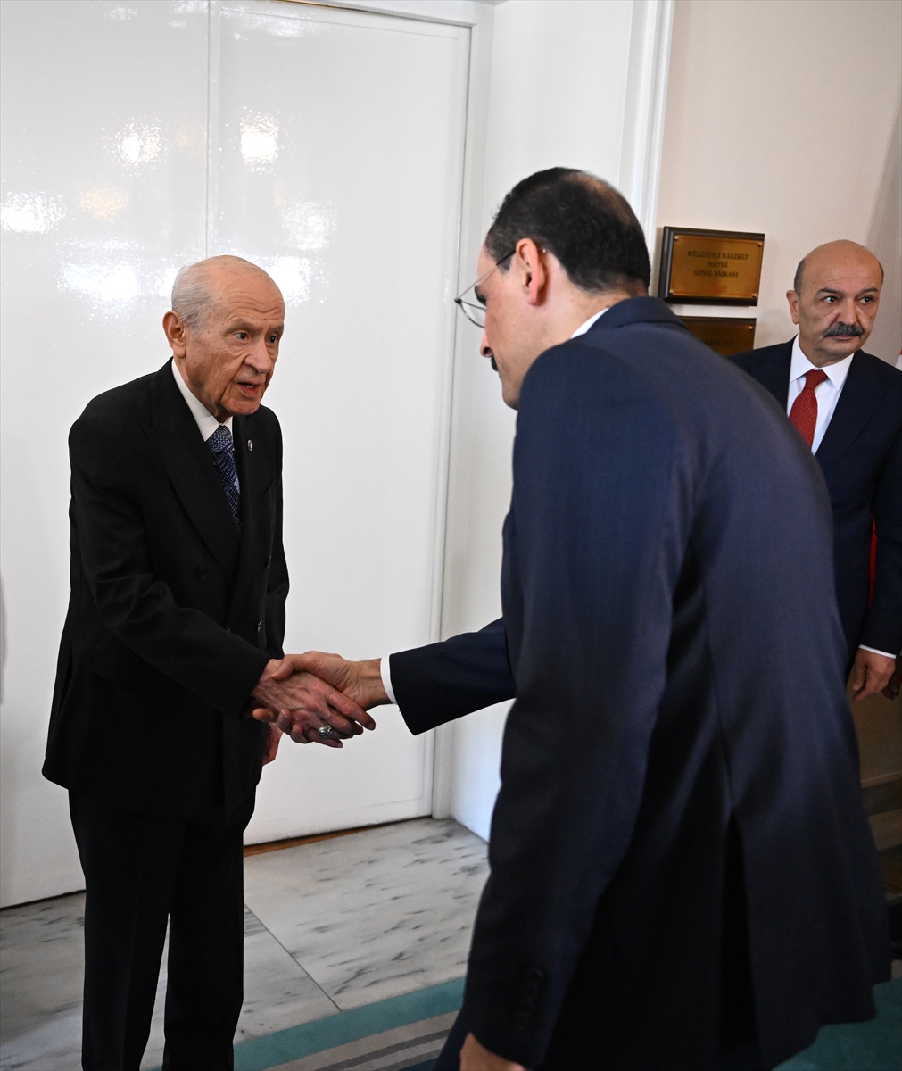 Bahçeli'nin Meclis'teki makamında basına kapalı gerçekleşen görüşme, yaklaşık 45 dakika sürdü.