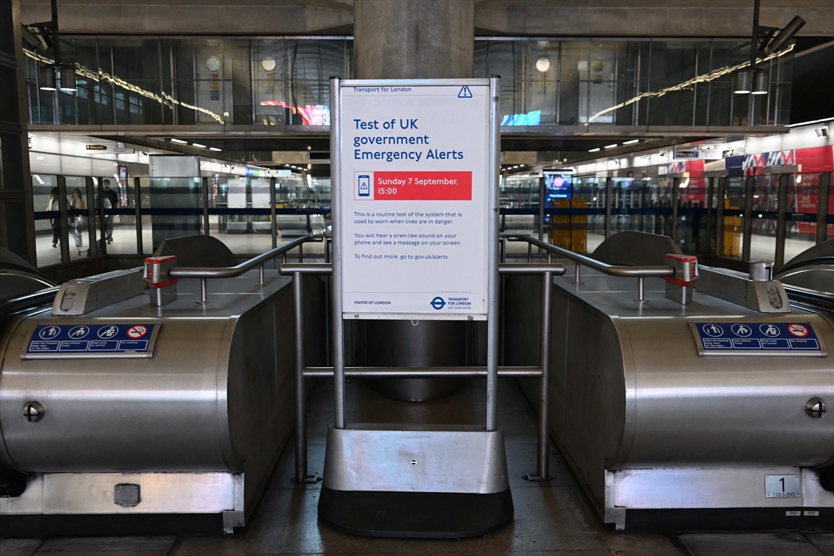 Londra metro girişlerine Test of UK Government Emergency Alerts” (Birleşik Krallık Acil Durum Uyarıları Testi) duyurusu asıldı.