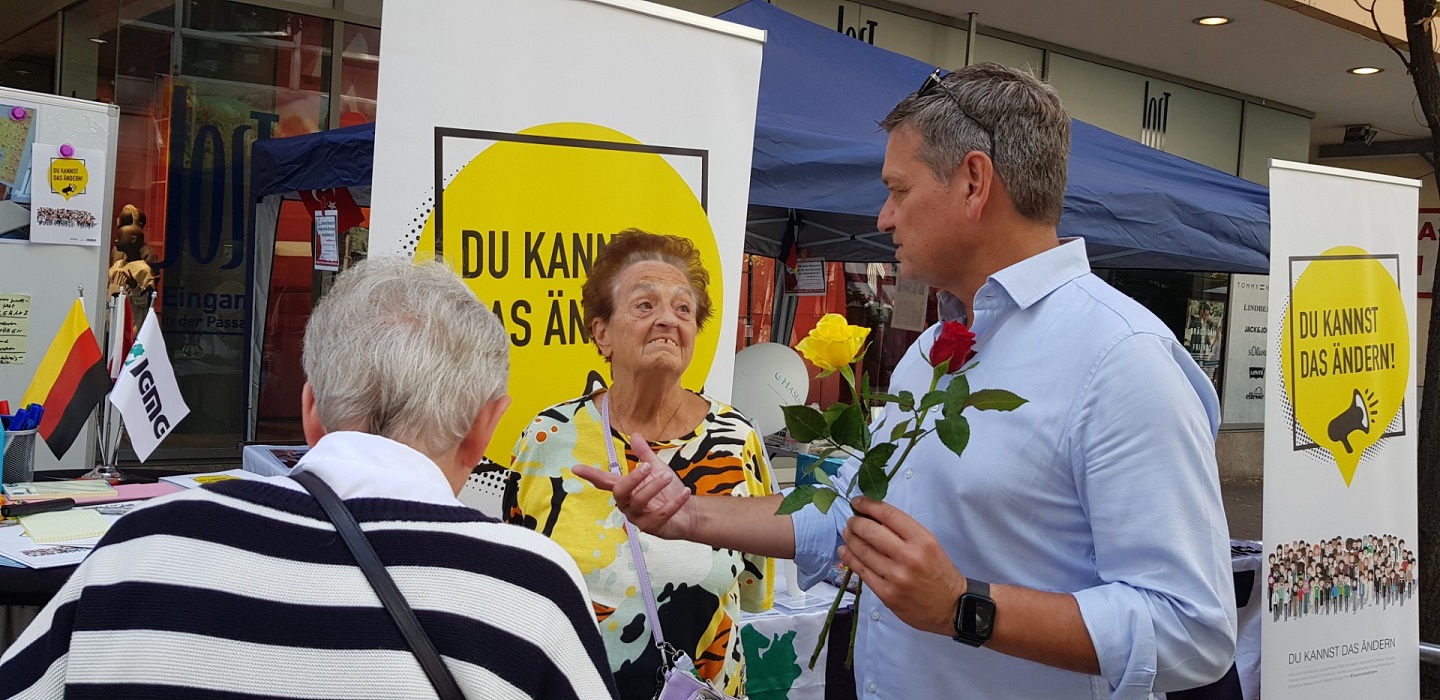 IGMG Rhein-Neckar-Saar Bölgesi Kadınlar Teşkilatı, ayrımcılık ve saldırılara karşı farkındalık oluşturmak amacıyla bölgedeki şehirlerde “Sen de değiştirebilirsin” aksiyonu gerçekleştirdi ve büyük ilgi gördü.