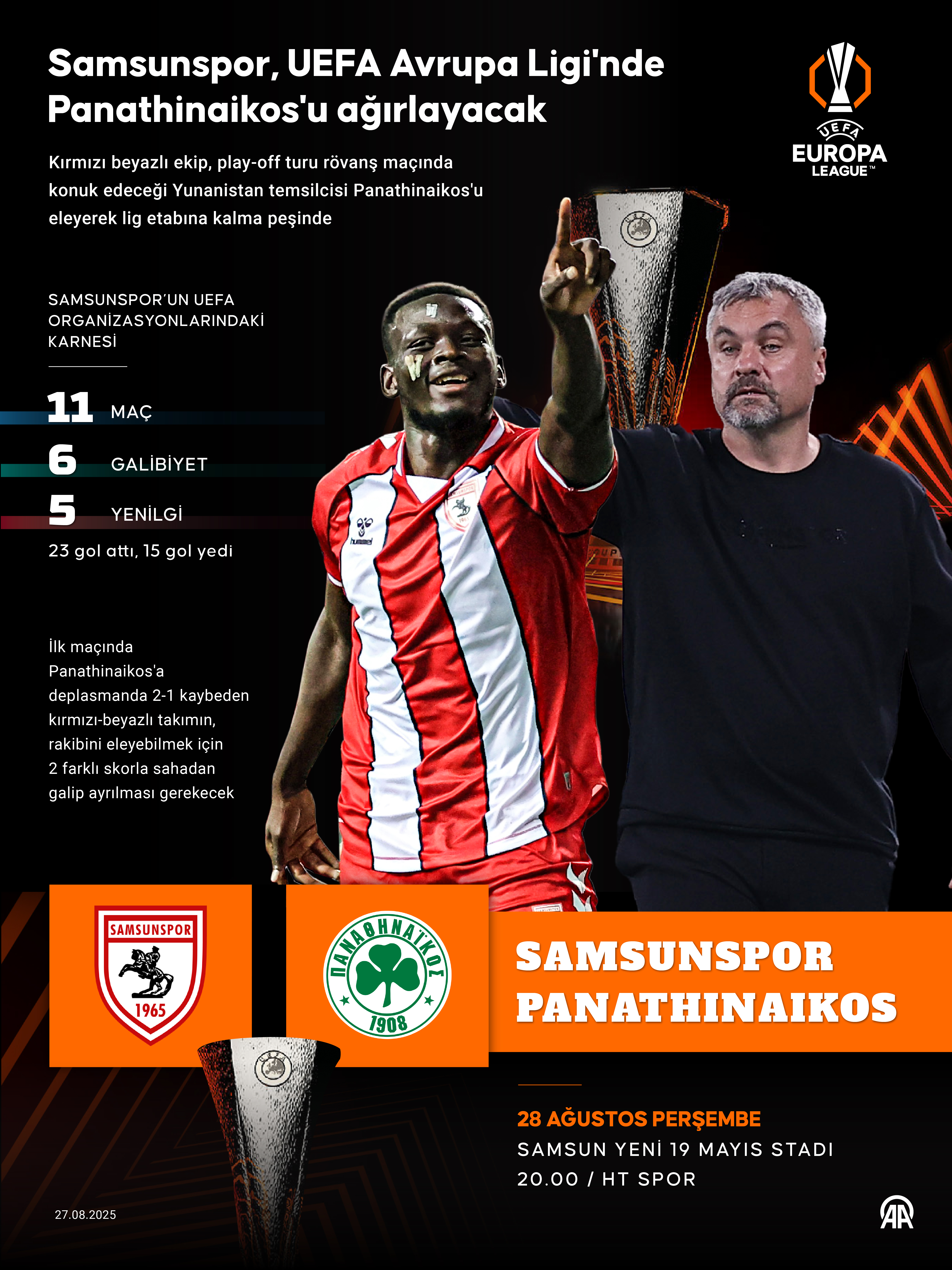 Samsunspor, rövanş maçında Panathinaikos'u ağırlayacak