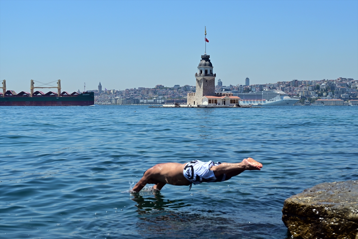 İstanbul'da sıcak havadan bunalanlar serinlemek için denizde yüzmeyi ve sahillerde dolaşmayı tercih etti.