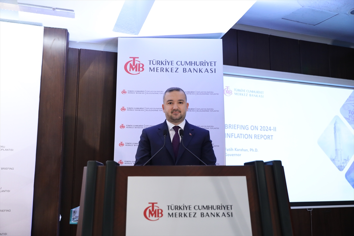Türkiye Cumhuriyet Merkez Bankası (TCMB) Başkanı Fatih Karahan, 2024 yıl sonu enflasyon tahminini 2 puan yukarı güncelleyerek yüzde 38'e çektiklerini ve 2025 ve 2026 tahminlerini sırasıyla yüzde 14 ve yüzde 9 seviyesinde koruduklarını bildirdi.