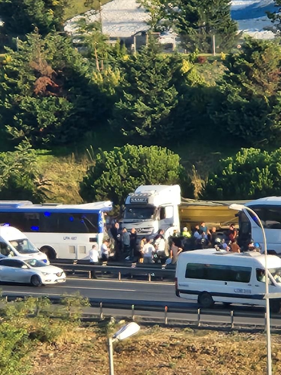 TEM Otoyolu'nun Edirne istikametinde otobüs ile hafriyat kamyonunun da karıştığı zincirleme trafik kazası meydana geldi.