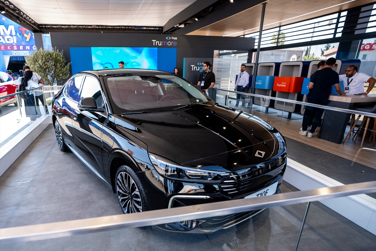 Türkiye'nin otomobili Togg'un ilk sedan modeli T10F, TEKNOFEST Adana'da vatandaşların beğenisine sunulurken başta gençler olmak üzere ziyaretçiler aracın farklı özelliklerini inceledi.