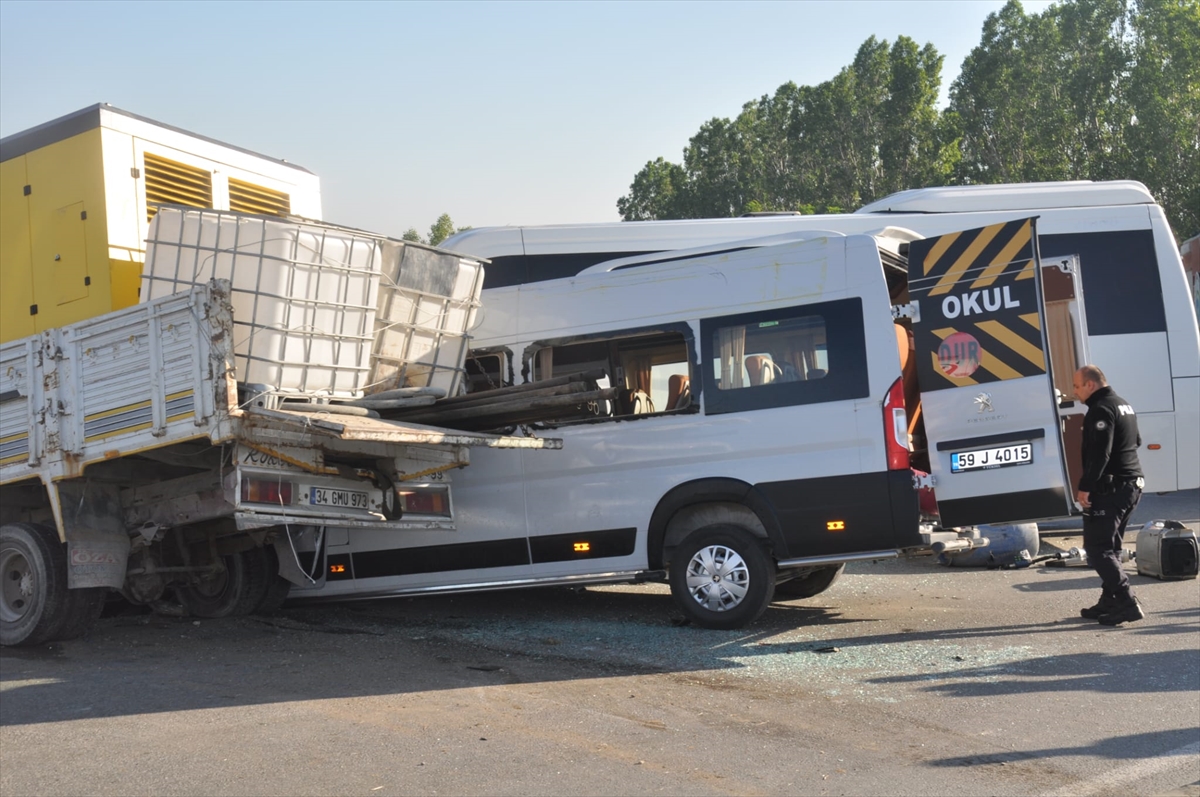 Freni arızalanan kamyonet işçi servislerine çarptı: 18 yaralı