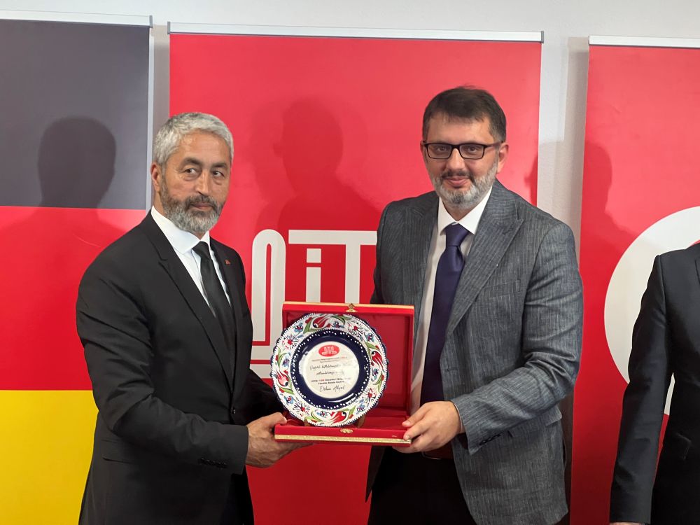 DİTİB Genel Başkanı Dr. Muharrem Kuzey, dernek bünyesinde yapılan çalışmalar için dernek başkanı Simmani Kamacı'ya bir plaket takdim etti.